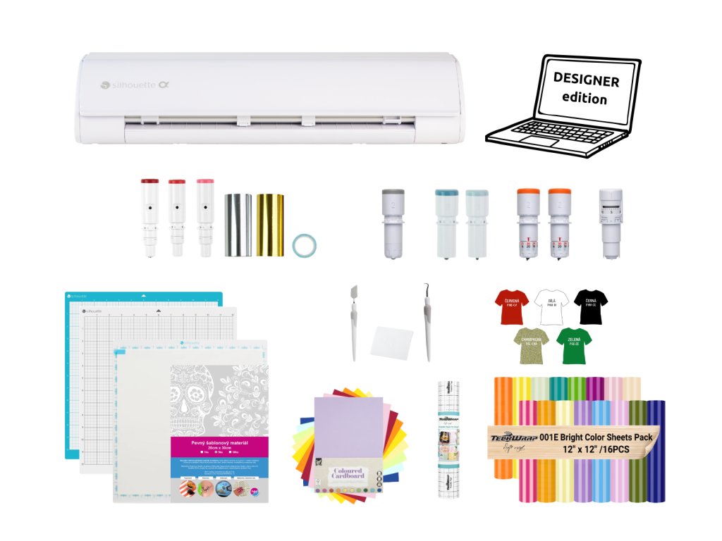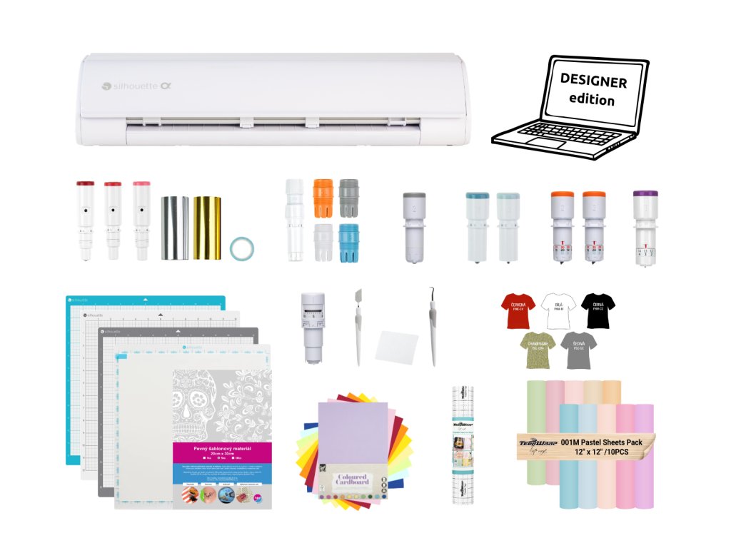 Nejen že budete mít kompletní sadu nástrojů pro Cameo5 Alpha pohromadě, ale rovnou se i budete moci pustit do řezání různých materiálů jako jsou samolepky, nažehlovačky či papíry. Designer edition Silhouette studia přináší pokročilé funkce pro kreslení, navrhování a úpravu grafiky, díky kterým můžete své projekty posunout na vyšší úroveň.