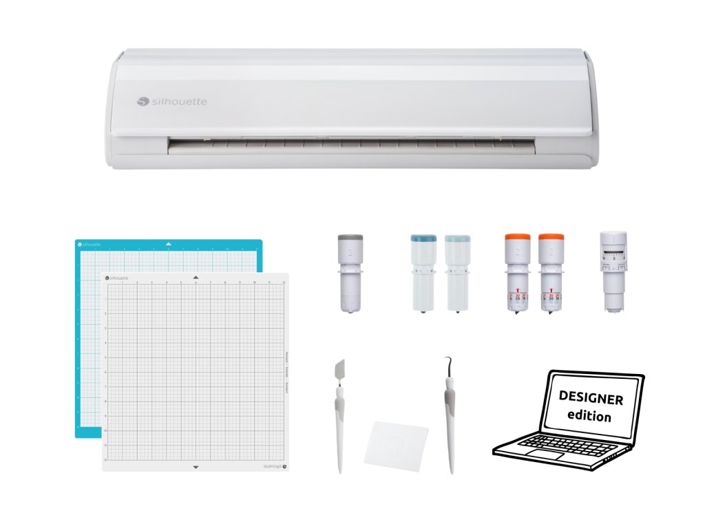Ideální sada pro ty, kteří chtějí mít kompletní příslušenství k plotru pohromadě a chystají se řezat své vlastní materiály nebo pro ty, kteří si materiály chtějí vybrat podle svého vkusu na našem eshopu. Set obsahuje navíc rošířenou verzi softwaru Designer Edition, která otevírá další možnosti pro všechny kreativce, kutily i profesionály. Rozšířená edice programu přináší pokročilé funkce pro kreslení, navrhování a úpravu grafiky, díky kterým můžete své projekty posunout na vyšší úroveň.