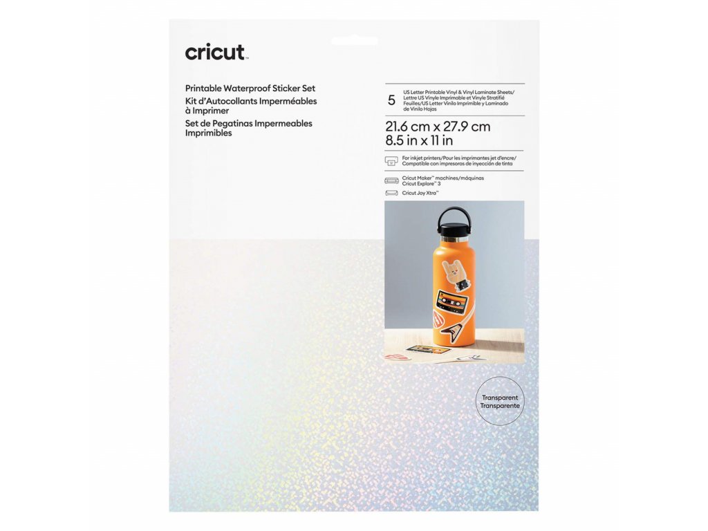Sada obsahuje listy potisknutelného vinylu a vinylové laminační folie. Použijte vinylový materiál pro tisk plnobarevných návrhů samolepek na vaší domácí inkoustové tiskárně. Na vytištěný arch naaplikujte laminační folii a následně vyřežte v plotru pomocí registračních značek.