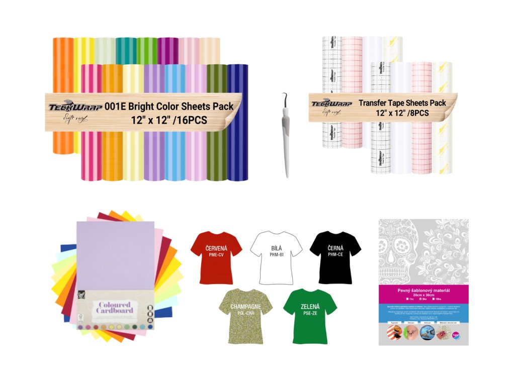 Sadu určitě doporučujeme ke koupi plotru. Obsahuje základní materiály pro řezání a nářadí, které vám ulehčí a zpříjemní práci s výřezy.