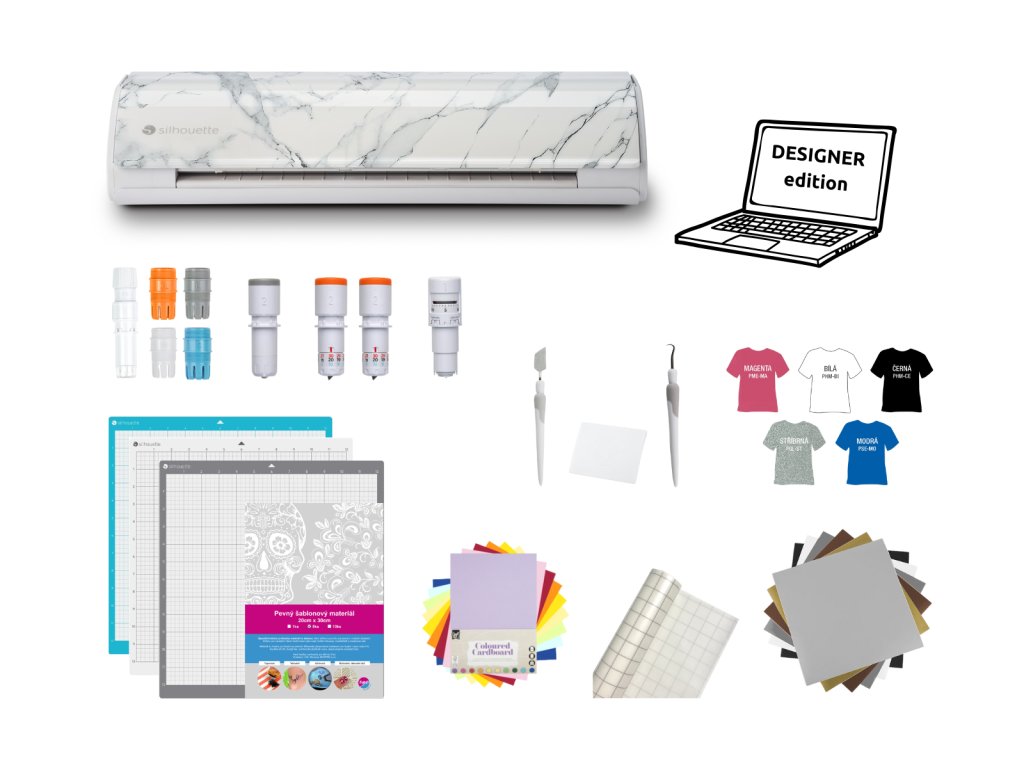 Nejen že budete mít kompletní sadu nástrojů pro Cameo5 pohromadě, ale rovnou se i budete moci pustit do řezání různých materiálů jako jsou samolepky, nažehlovačky či papíry. Designer edition Silhouette studia přináší pokročilé funkce pro kreslení, navrhování a úpravu grafiky, díky kterým můžete své projekty posunout na vyšší úroveň.