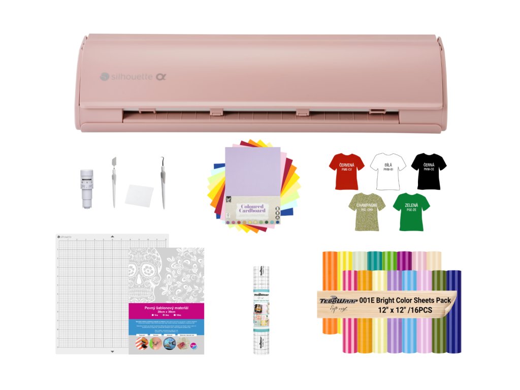 Růžový řezací plotr Silhouette CAMEO5 Alpha s kreativní sadou materiálů
