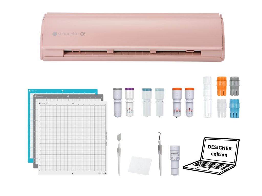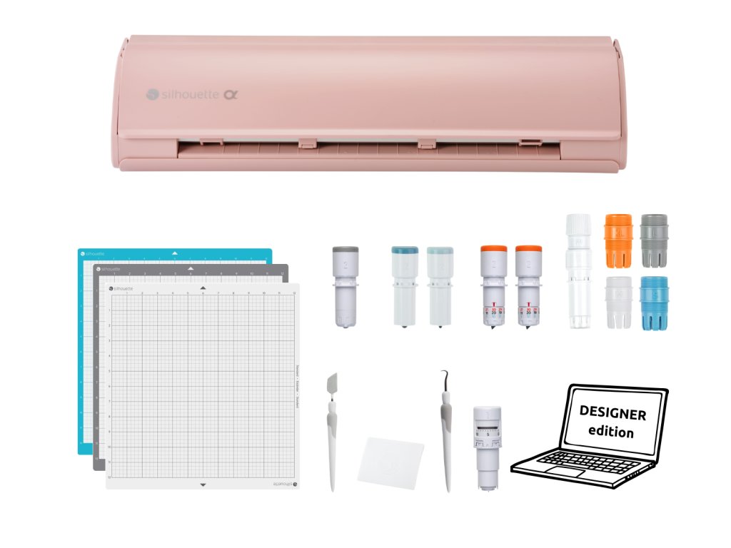 Růžový Silhouette CAMEO5 Alpha s noži a nářadím