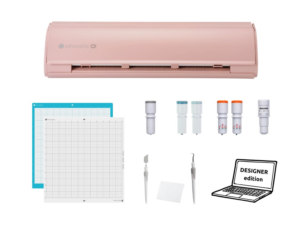 - Růžový řezací plotr Silhouette Cameo5 Alpha - v balení automatický nůž a řezací podložka 30x30cm standard lepivosti