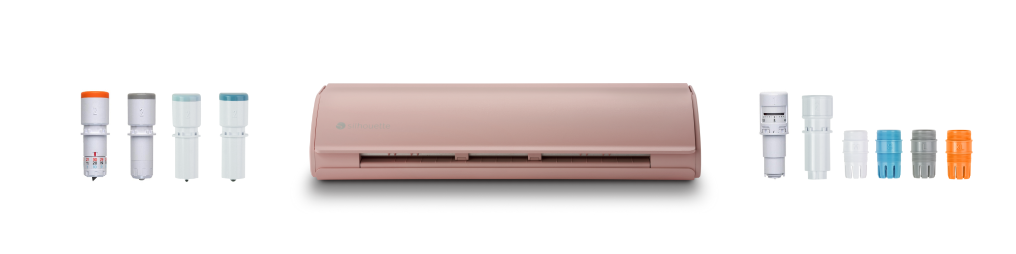 Růžový Silhouette CAMEO5 s noži a nářadím