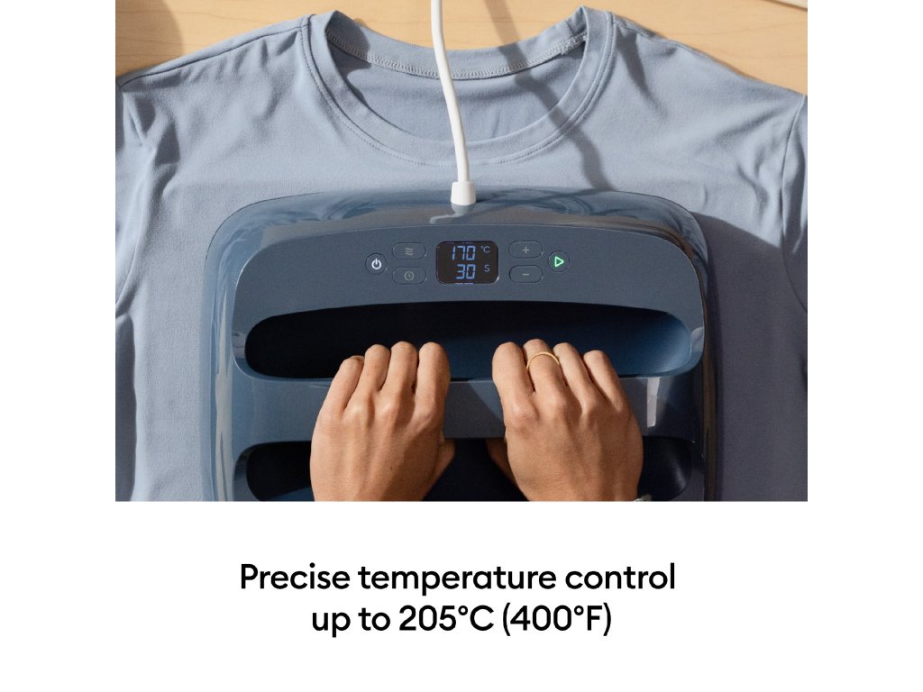 | Balení obsahuje: | termolis Easy Press SE (30x25cm), základnu pro odstavení lisu, podložka pro nažehlování |
