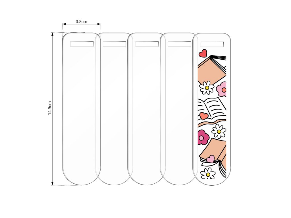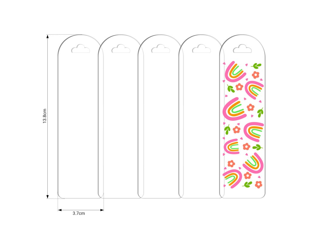 Akrylové záložky do knihy 5ks. Před nanesením vlastních vzorů sloupněte ze záložky ochrannou krycí vrstvu.